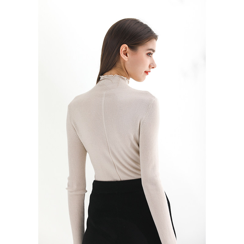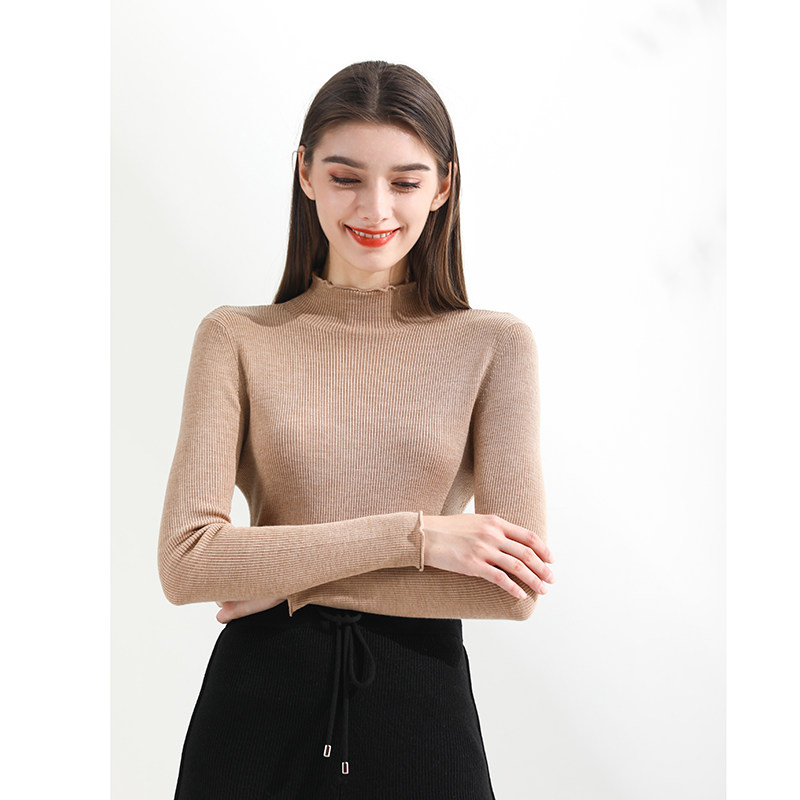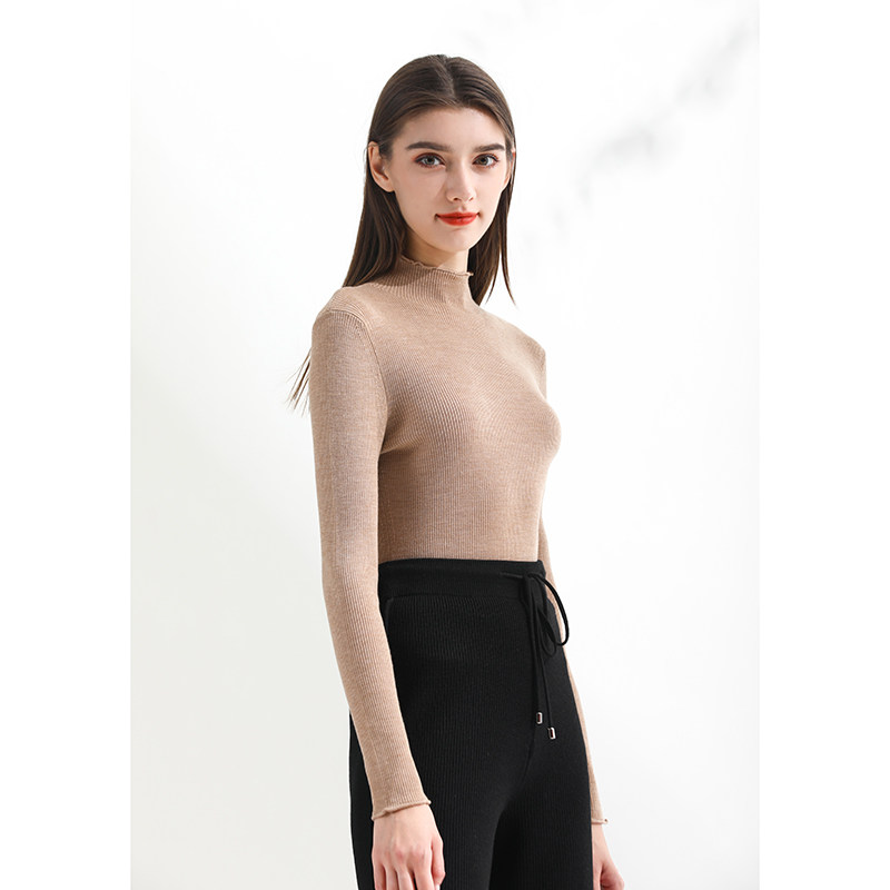 Riz collection fans exclusively wear the camel trim collar 120 ultra-fine wool knitwear