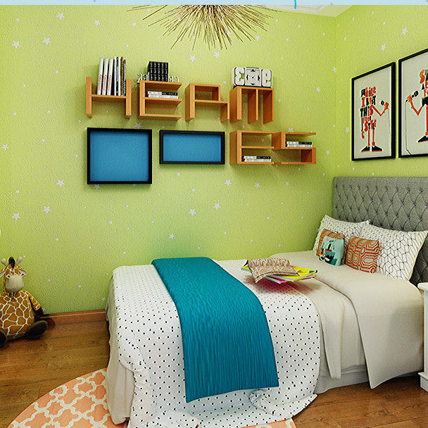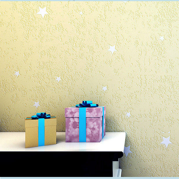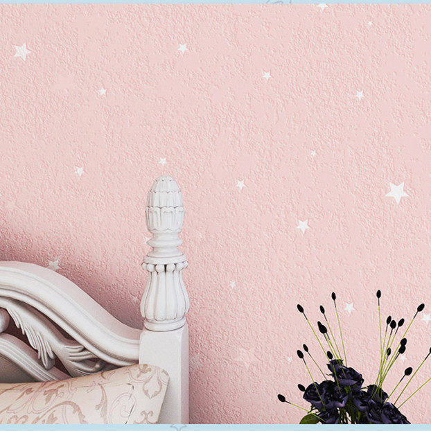 Blue children's room star wallpaper warm green cartoon boy girl bedroom starry sky pink brush glue wallpaper