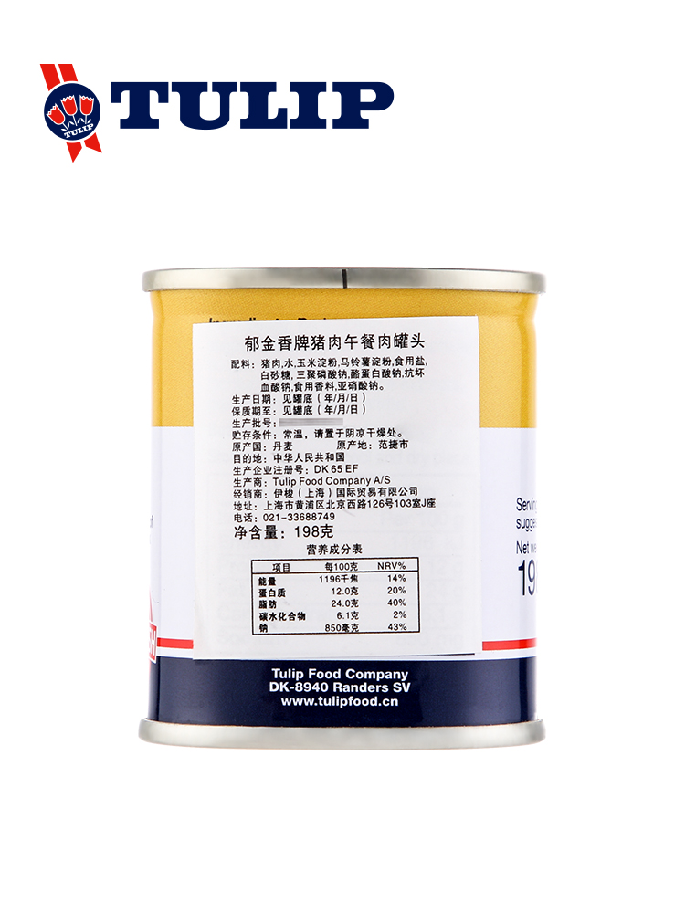 Tulip Denmark imported tulip three flower luncheon meat canned pork 198g*3