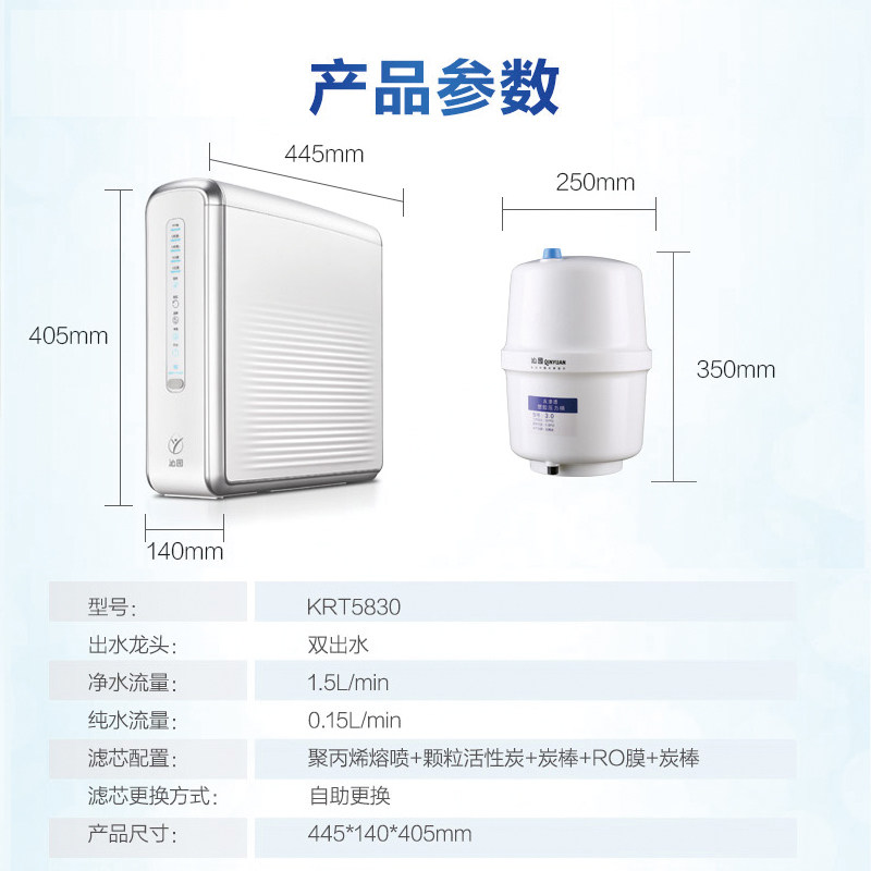 (Same paragraph in the mall) Qinyuan RO reverse osmosis water purifier double effluent FMS filter intelligent management KRT5830