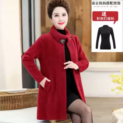 Middle-aged and elderly people thickened mink coat girls long Yangpai Fat Mama autumn and winter woolen coat plus fertilizer plus