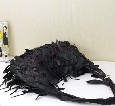 Tassel oversized bag personality stitching shoulder leather sheepskin women's bag bohemian motorcycle bag rock punk bag cool