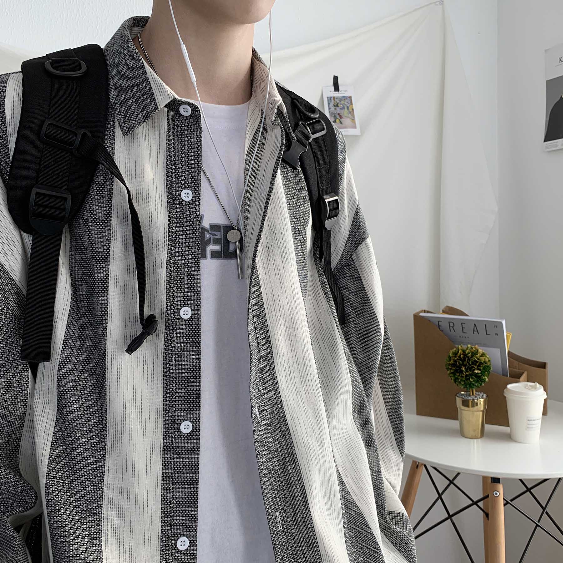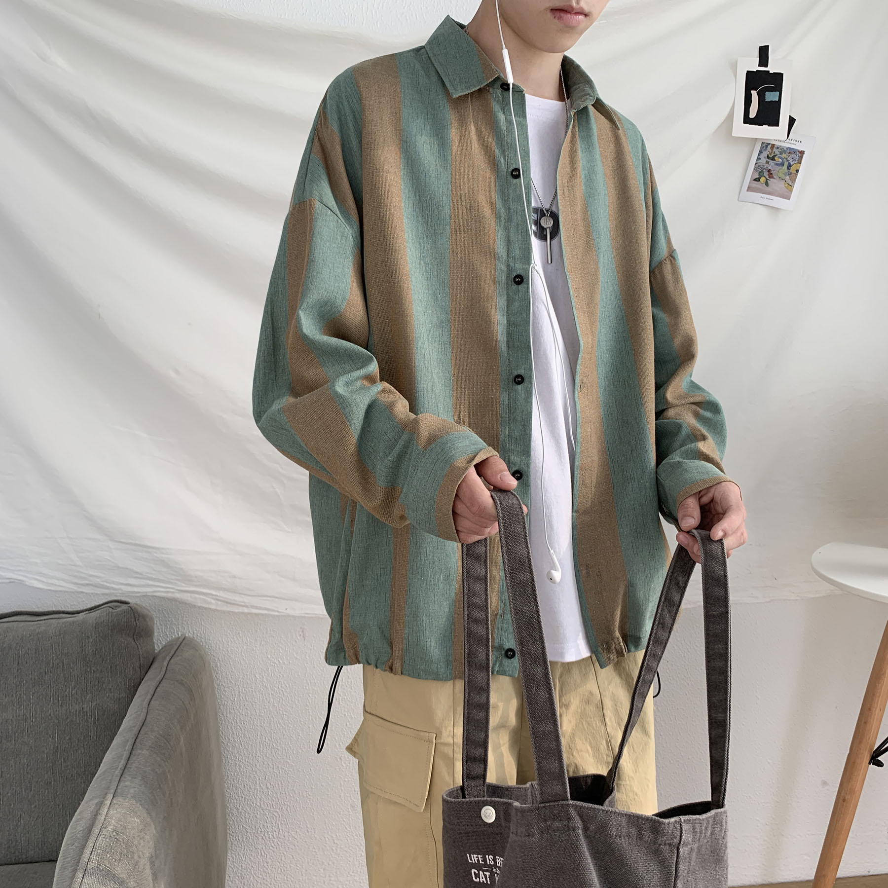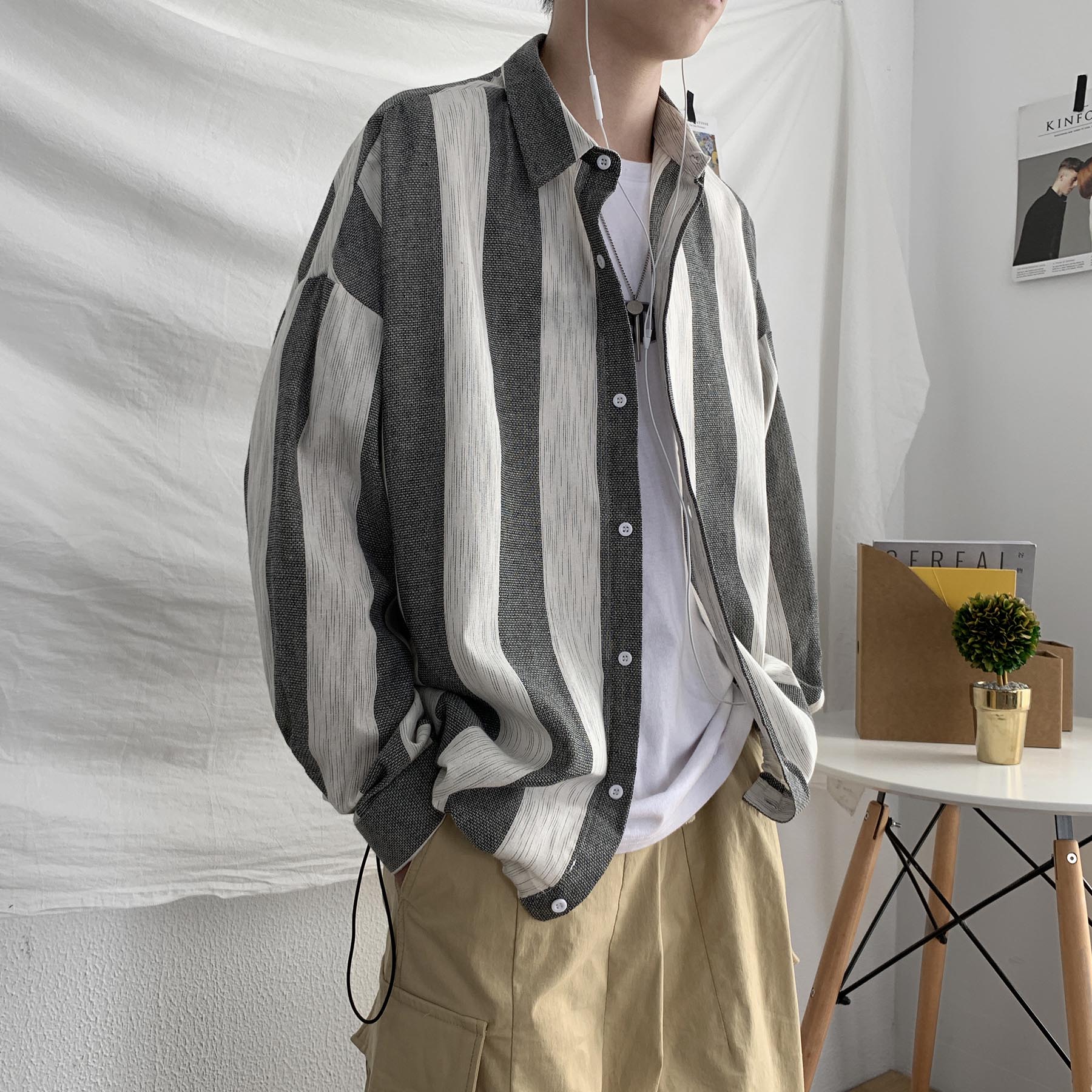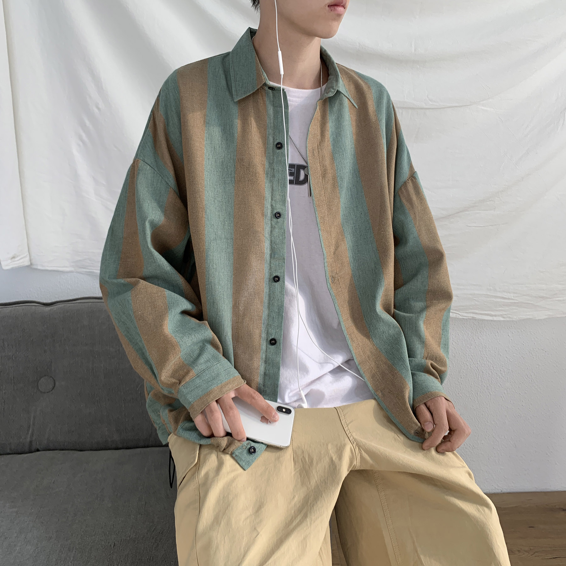 Very fairy shirt men's long sleeve Korean version of tide ins ruffian handsome loose shirt Joker Hong Kong style chic coat men's spring and autumn