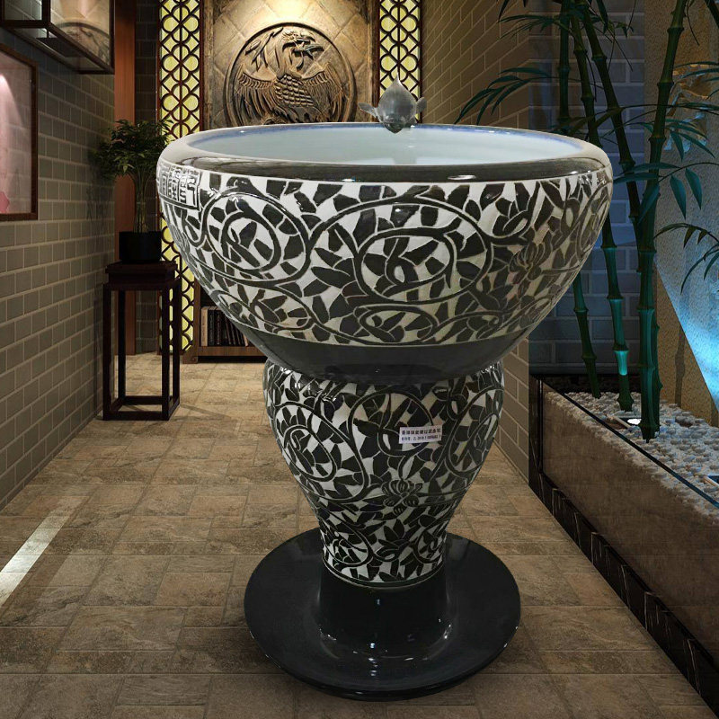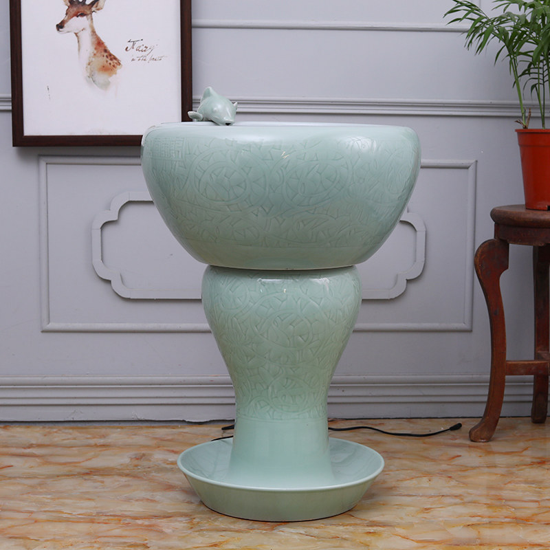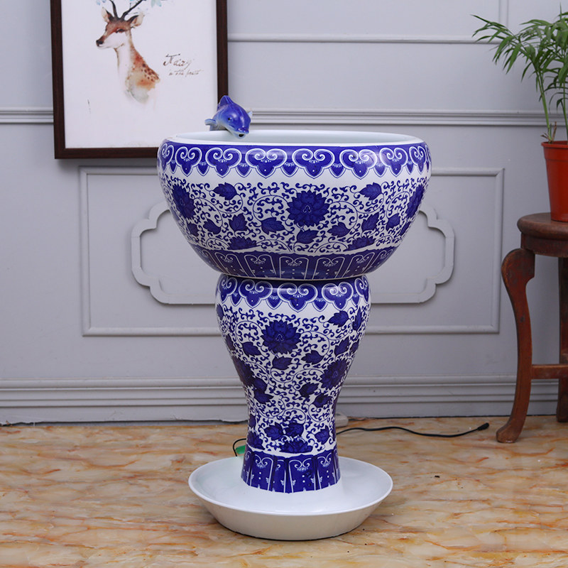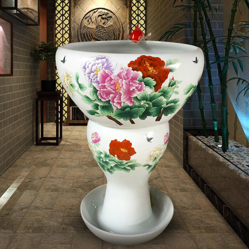 Jingdezhen Ceramic Gold Fish Tank Large Fish Bowl Filter Circulating Water Cylinder Microscopic Landscape Living Room Ornament