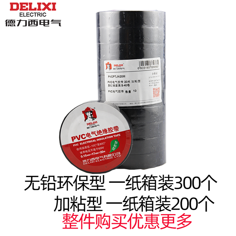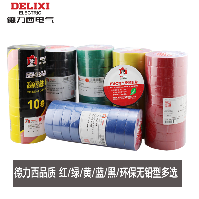 Delixi PVC electrical tape Insulated electrical wire tape Waterproof lead-free environmental protection large roll PVC tape 20 meters