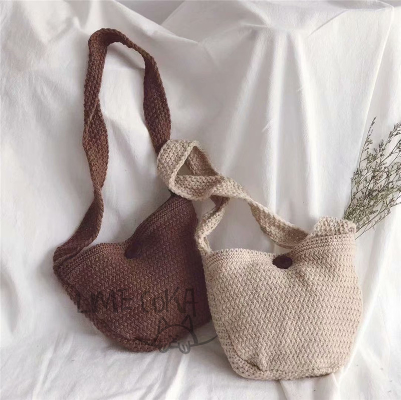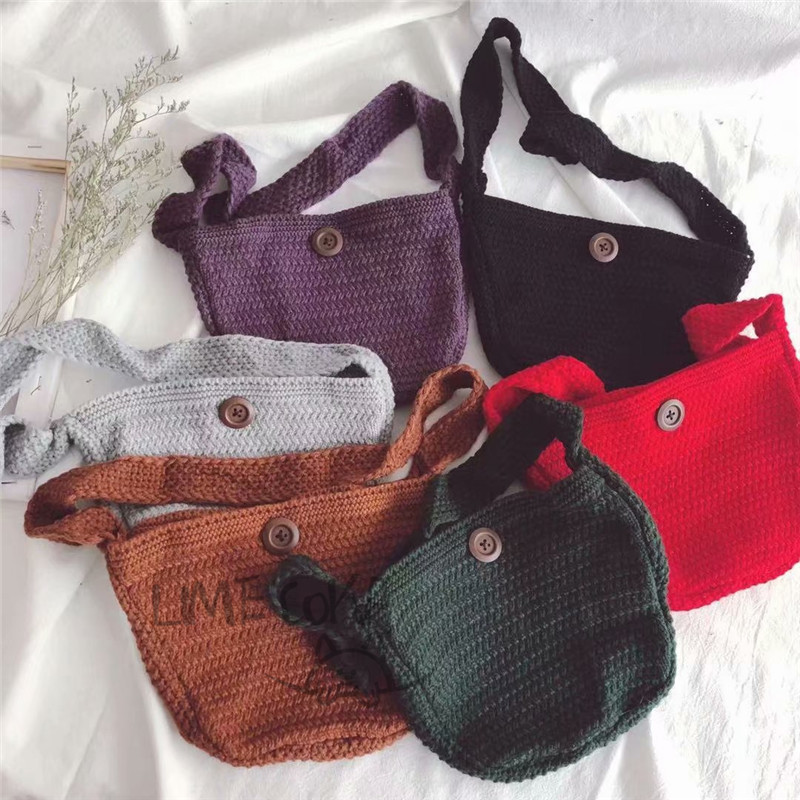 Day Department Pure Color Large Wood Buckle Children Knit Bag Covered Wool Wire Bag Diagonal Satchel Small Backpack-Taobao