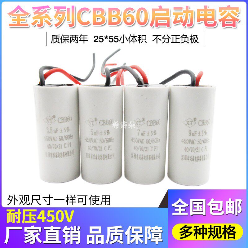 CBB60 washing machine capacitor 3 4 5 5 6 7 8 9 10UF Small body seeded mercury motor start capacitor