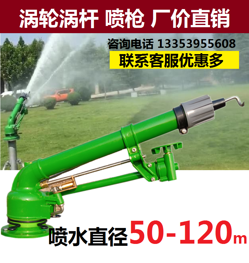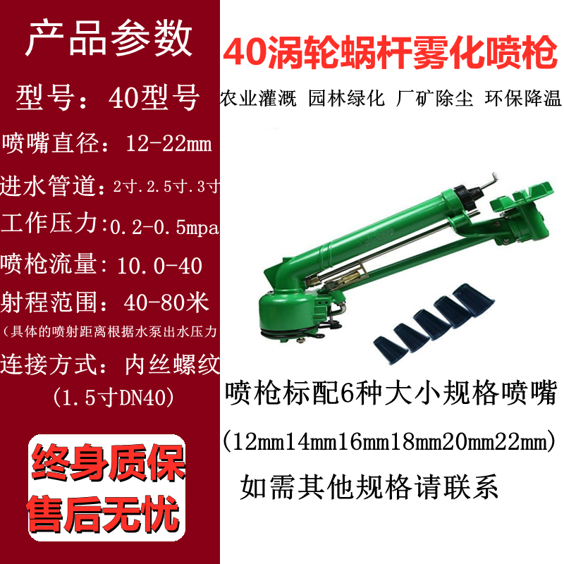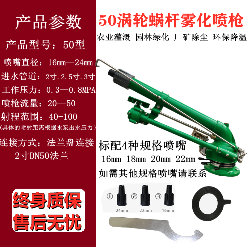 Turbine Worm Rod Irrigation Water Gun Agricultural Dust Removal Rocker Nozzle 360 Degrees Rotating Far Range Atomization Pouring Ground Spray Gun