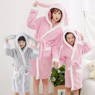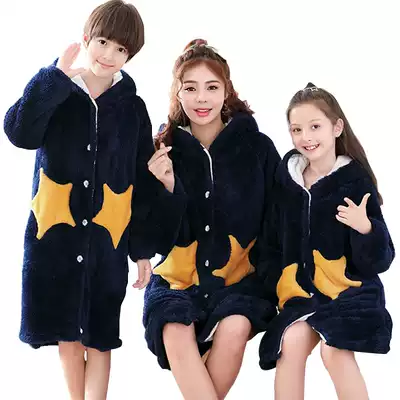 Children's robes, boys, big children, flannel pajamas girls coral velvet autumn and winter parent-child mother women's bathrobe