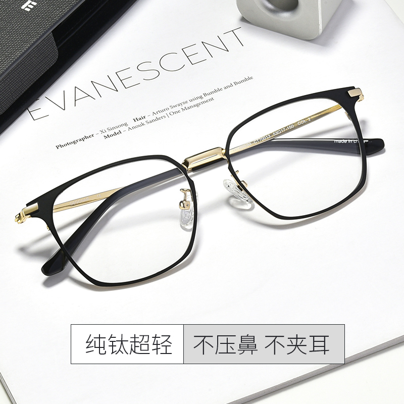 Radiation-resistant anti-blue light fatigue glasses male tide pure titanium large face discoloration myopia glasses computer eye protection flat light eyes