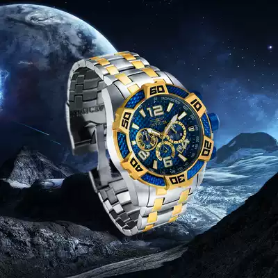 Overseas Invicta Speedway Green Water Ghost Three Eyes Timing Gold Men's Watch 25947