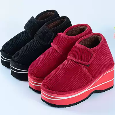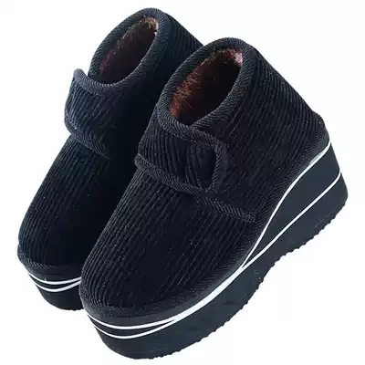 Winter warm shoes women's high-heeled thick-soled non-slip plus velvet thickened home indoor women's cotton slippers bag heel increased