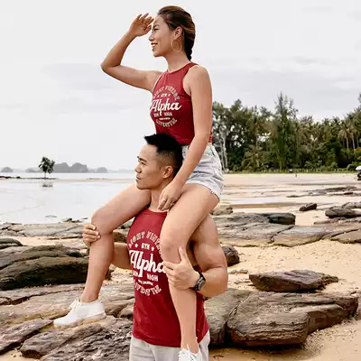 AlphaGym Couples Sports Vest New Contrast Print Slim Cotton Sports Training Sleeveless T-shirt