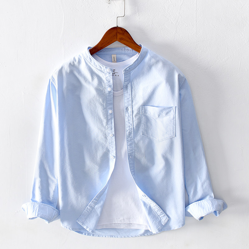 Very hemp Japanese stand-up collar casual Oxford spinning long-sleeved shirt men's autumn youth loose cotton shirt jacket trendy