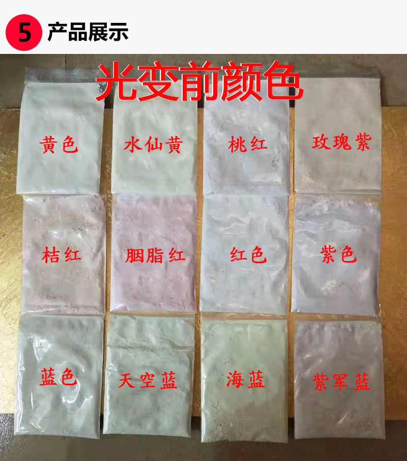 Photosensitive discoloration powder in case of light UV discoloration process gift decoration injection molding UV anti-counterfeiting printing pigment 10 grams