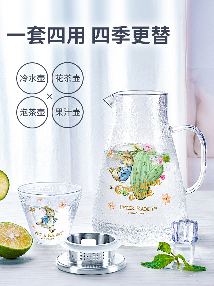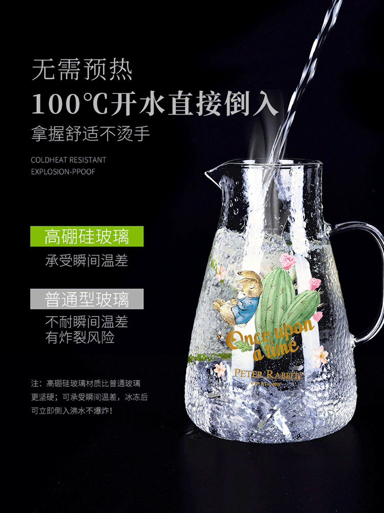 British BYD Rabbit glass cold water pot large capacity high temperature resistant thickened hammer pattern household summer cold water pot set