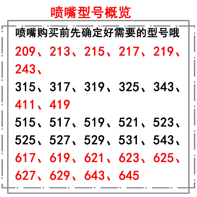 Orange Red Dark Grey Grey Light Grey Silver Black Rice White Milky White 209 Tungsten Steel Nozzle A 213 215 Tungsten Steel Nozzle A 219 Tungsten Steel Nozzle A 213 Tungsten Steel Nozzle