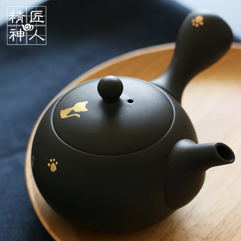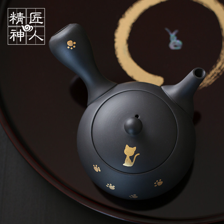 Spot Japan Imports Changslide Burn Zhaomeng Kilns Golden Kitten Crosshand Rushing to the Teapot Day Style Tea Set