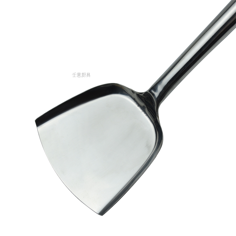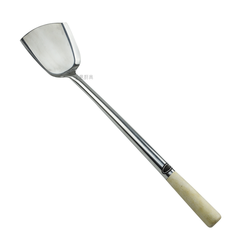 Wood handle Stainless Steel Pan Shovel Home Fried Vegetable Spade Spoon Dining Room Chef Large pan Scoop Stir Fry spoon Anti-scalding long iron frying shovel