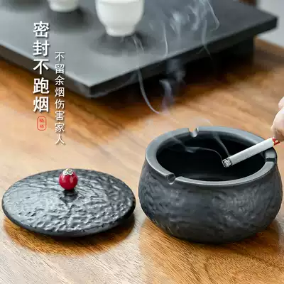 Ashtray creative personality trend Home Office living room sealed with cover anti-flying ceramic multifunctional ashtray