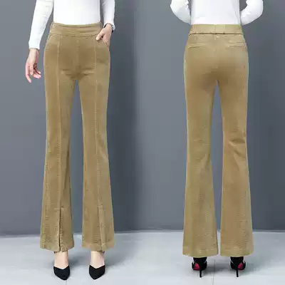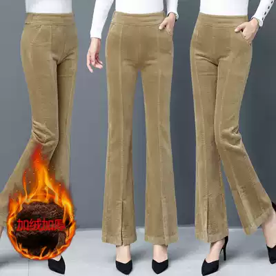 Dend feel flared pants women 2021 Spring and Autumn Winter new casual Velvet micro Bell pants plus velvet thick corduroy wide leg pants
