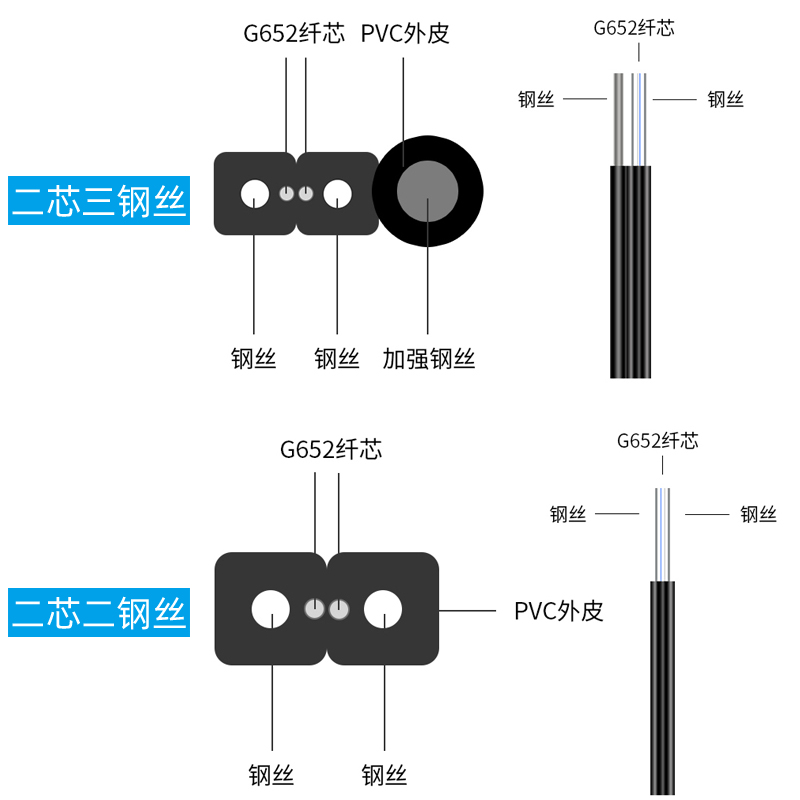 Can matter FTTH indoor outer skin line optical cable single mode leather line optical fiber 1 core 2 core into the user fiber line self-bearing type