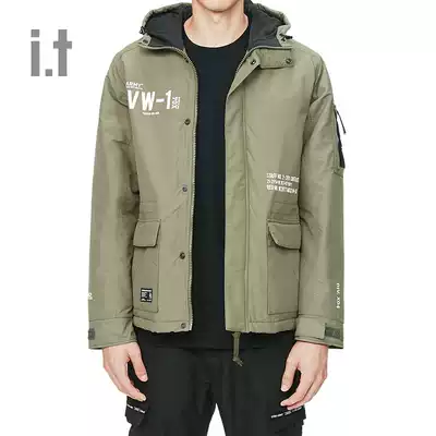 it izzue men's hooded cotton jacket winter casual trend printing pocket decoration 7135F9D