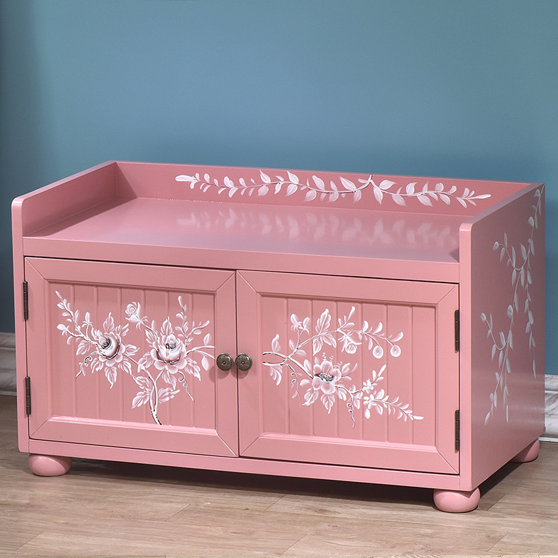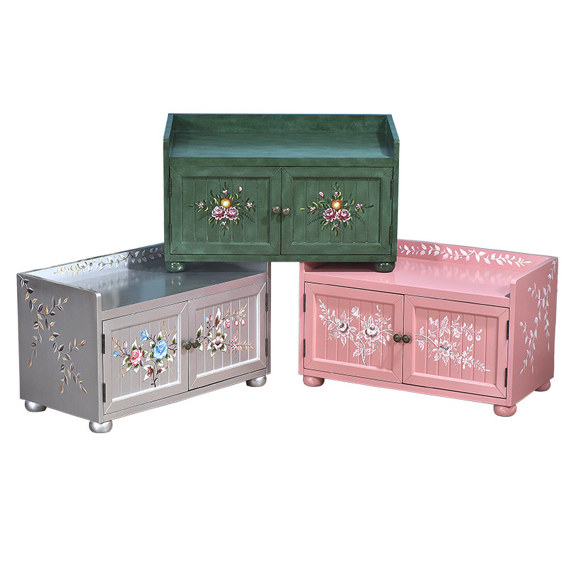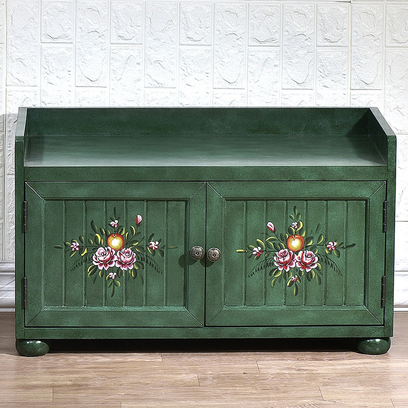 American Countryside Swapped Shoes Stool Home Doorway Color Painted Solid Wood Storage Cabinet Door Hall Wearing Shoes Cabinet Bench Unity