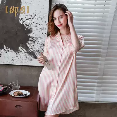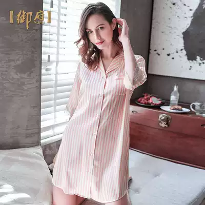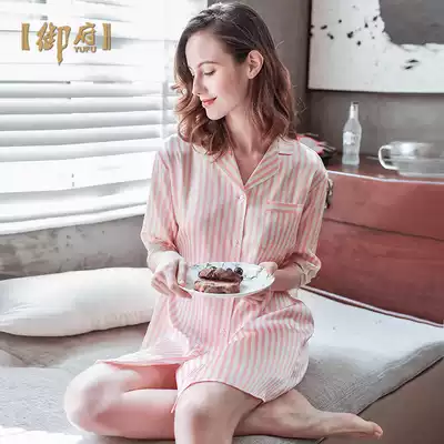 Yufu pink 19 m heavy mulberry silk nightgown striped shirt style mulberry silk pajamas large size women's skirt
