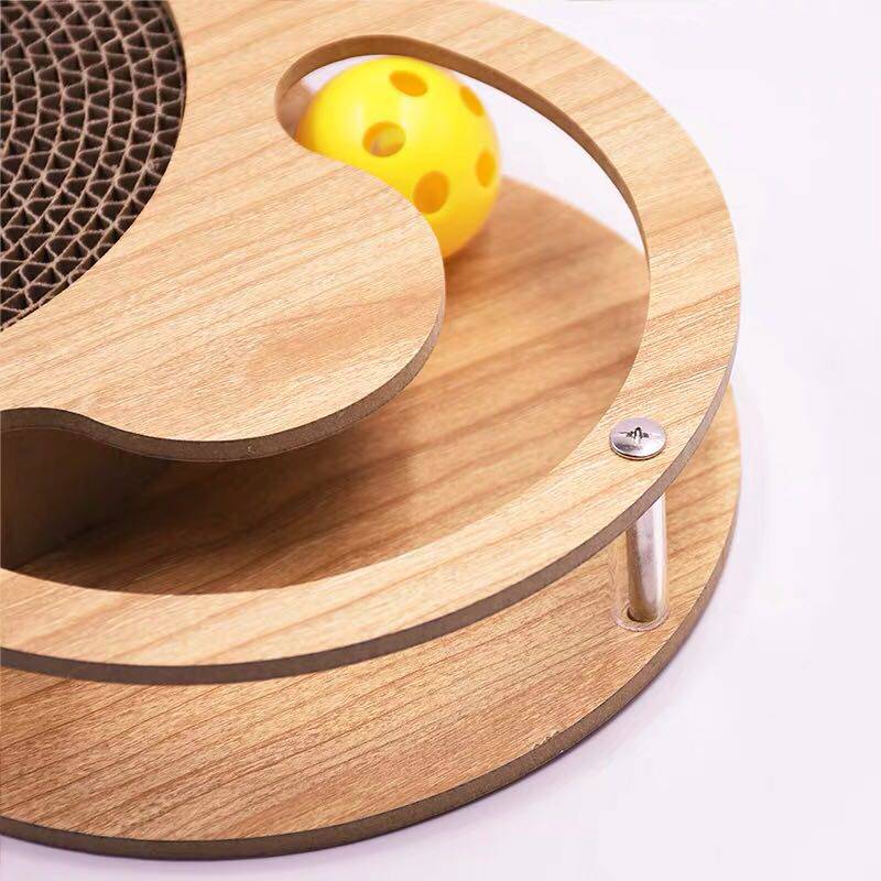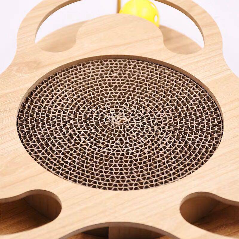 Fibreboard Wood Grain Catch box Puzzle Cat Toy Corrugated Paper Cat Grab Board Bell Bell Ball Sound Toy