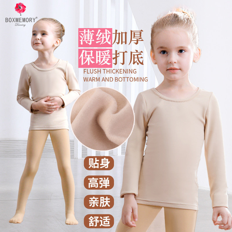 Children's flesh-colored bottoming clothes autumn and winter dance clothes plus velvet warm thickening bottoming shirt girls skin color invisible tights