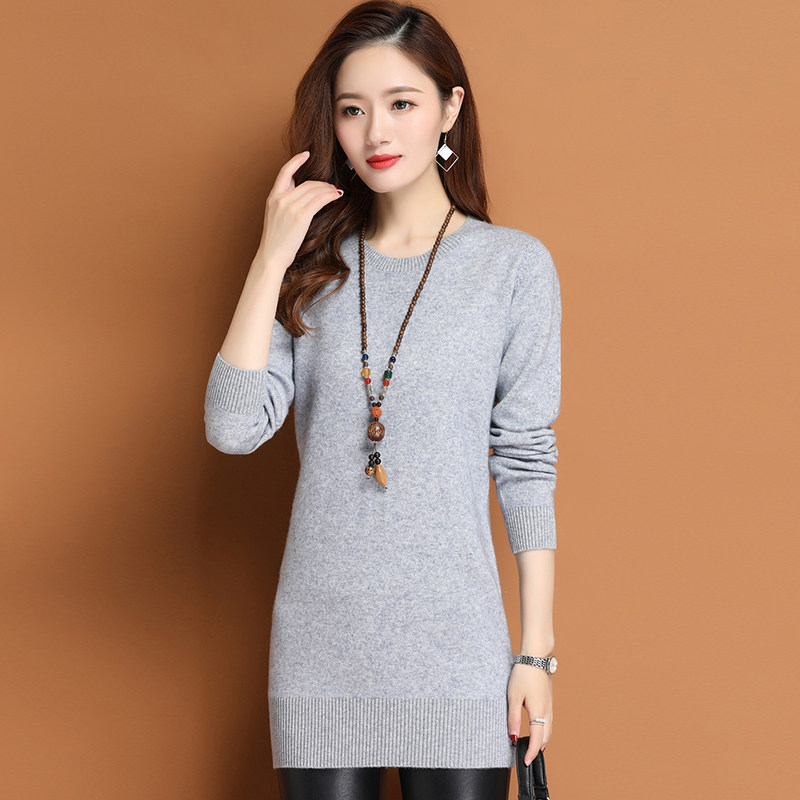 Autumn and winter 100 pure wool sweater women's mid-length bottoming shirt 2022 new Korean version slim round neck knitted sweater skirt