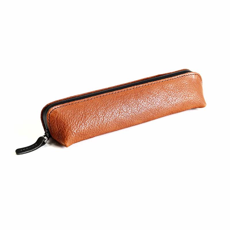 ERAL Traveler series Simple handmade small pen bag Vegetable tanned leather thread seam pen bag Slender style 10 pens storage student stationery pen bag