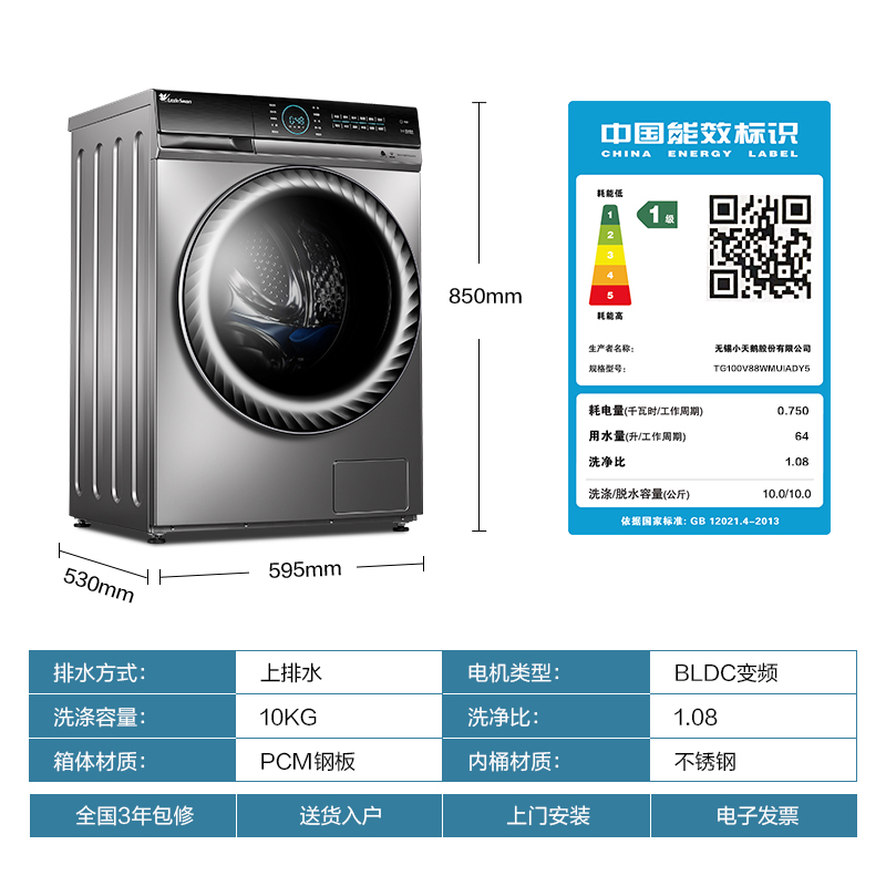 Small swan roller washing machine Full automatic Water Cube Home 10KG Smart home appliances TG100V88WMUIADY5