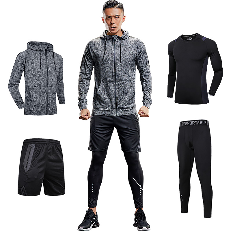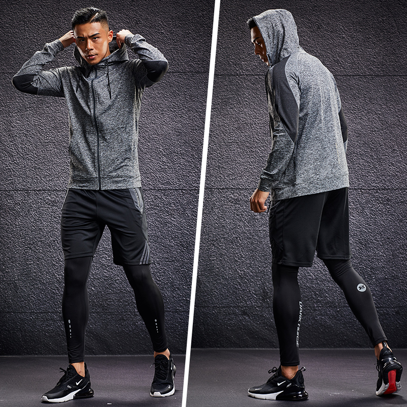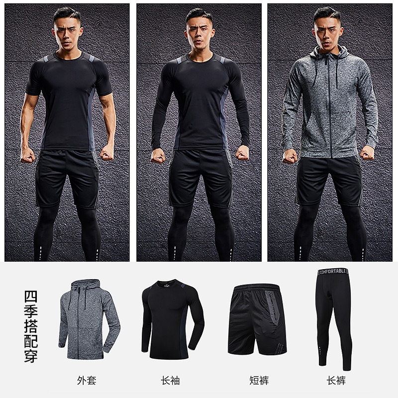 Fitness suit men's suit Running gym sports tights Autumn and summer football basketball training equipment Quick drying clothes