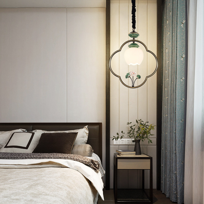 Full copper single head small hanging light bedroom headboard floating window New Chinese style dining room bar table modern minimalist creative personality long line