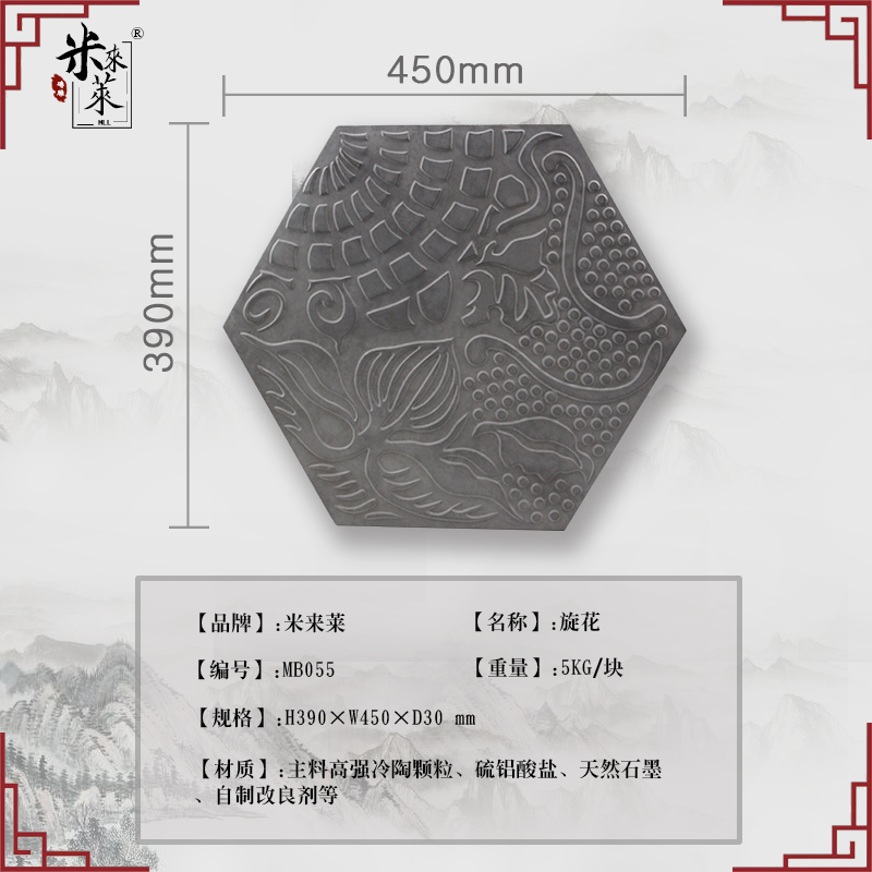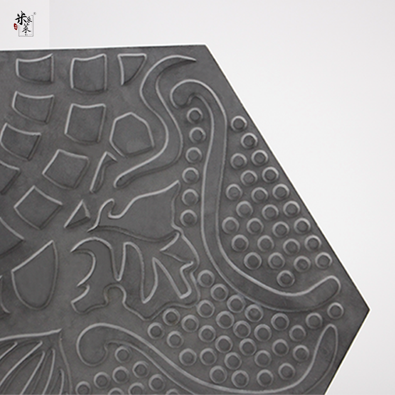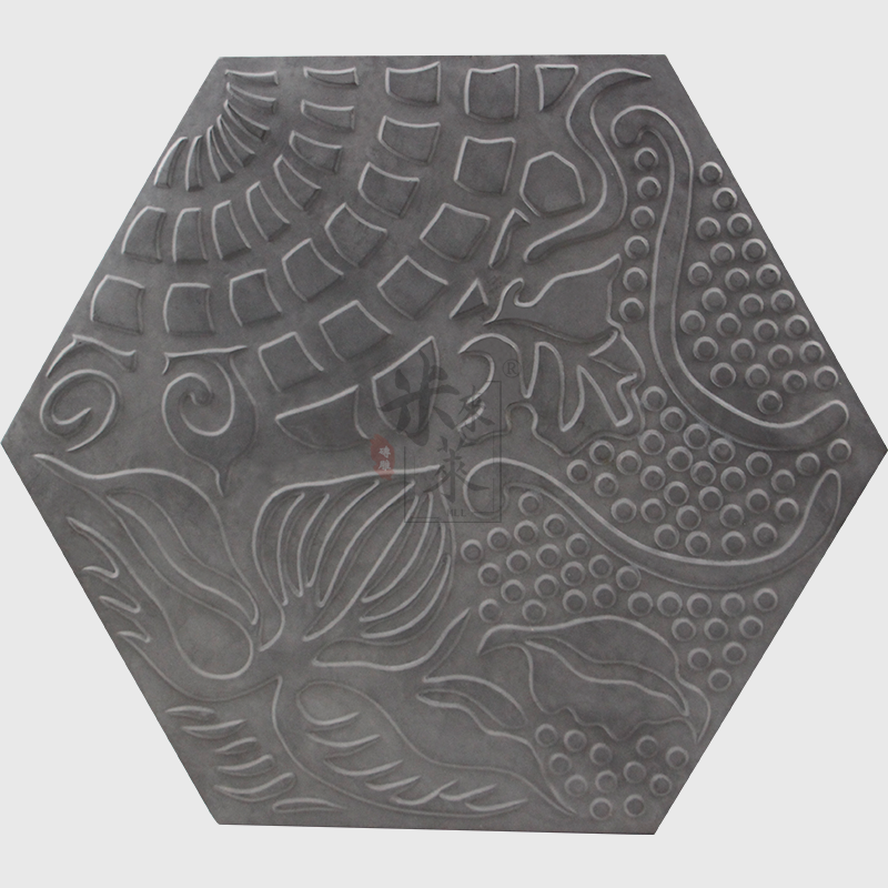 Chinese-style ancient building brick carving antique blue brick wall and floor brick decoration photo wall shadow wall relief hexagonal floor brick twist flower