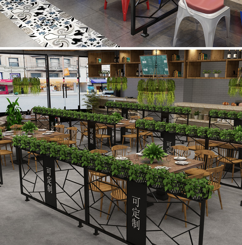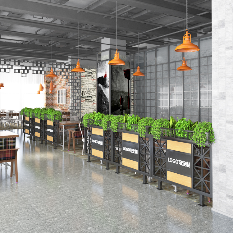 Industrial wind wrought iron partition flower stand office coffee bar dining room card stand green plant screen decoration low fence