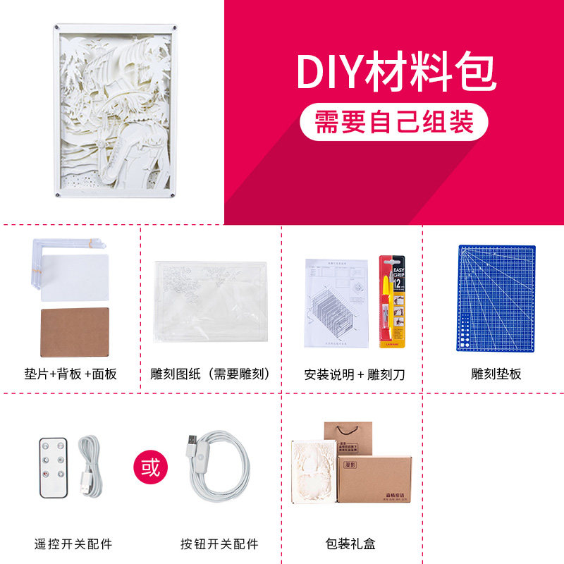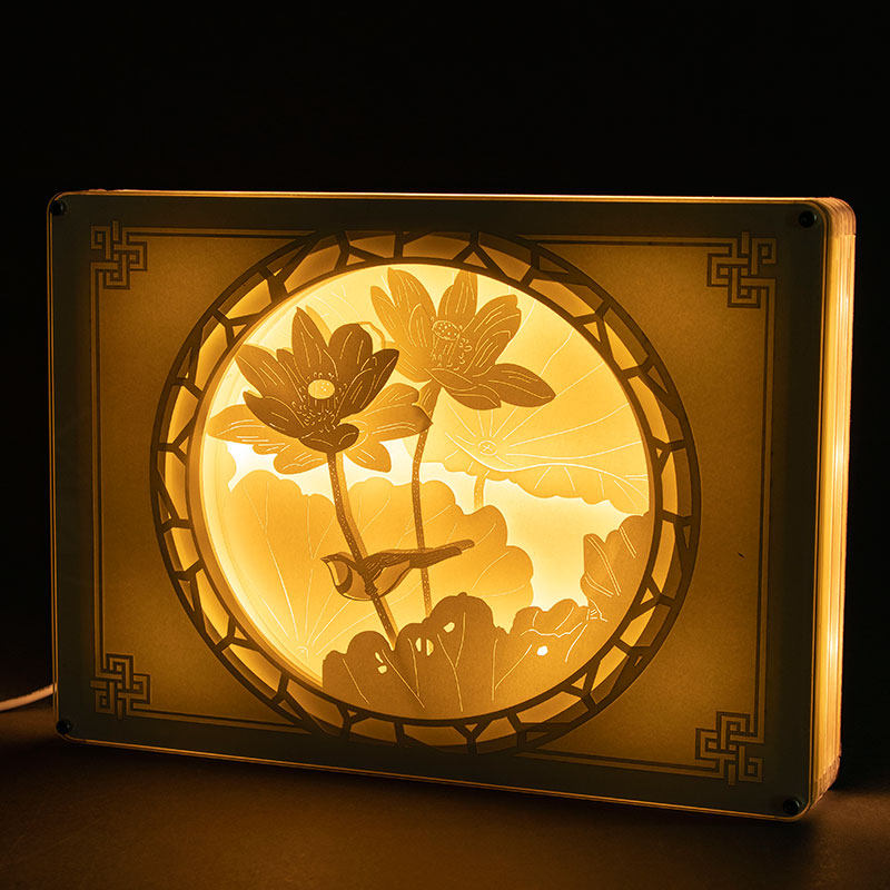 Chinese style flower and bird painting handmade DIY origami book night light shadow three-dimensional paper carving lamp handmade cultural and creative gift