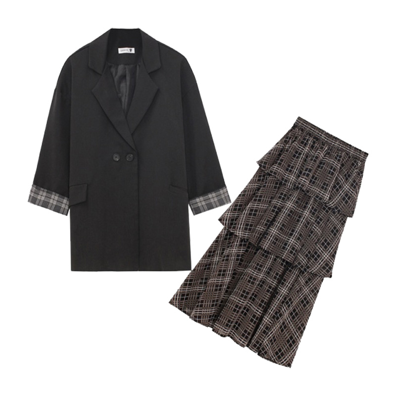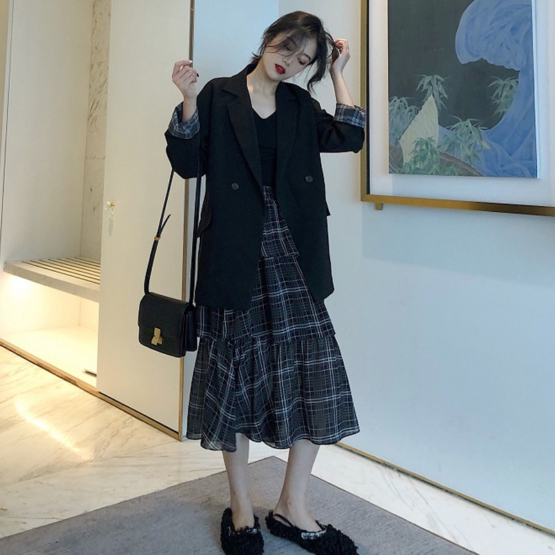 8364 One-piece black suit(college wind careful machine super fairy small man small fragrant wind socialite) One-piece plaid skirt(college wind careful machine super fairy small man small fragrant wind socialite) 8364 pictures