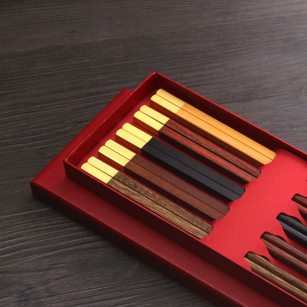 Five fu Chinese chopsticks (5 double gift boxed) black sandalwood Chinese chopsticks (5 double gift boxed) blood sandalwood Chinese chopsticks (5 double gift boxed clothes) Chicken winged wood Chinese chopsticks (5 double gift boxed) red sandalwood Zhonghua