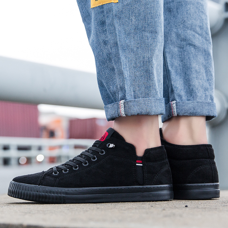 Renben 2022 spring new mid-tube canvas shoes men's high-top shoes cover toe shoes men's trendy shoes casual black cloth shoes
