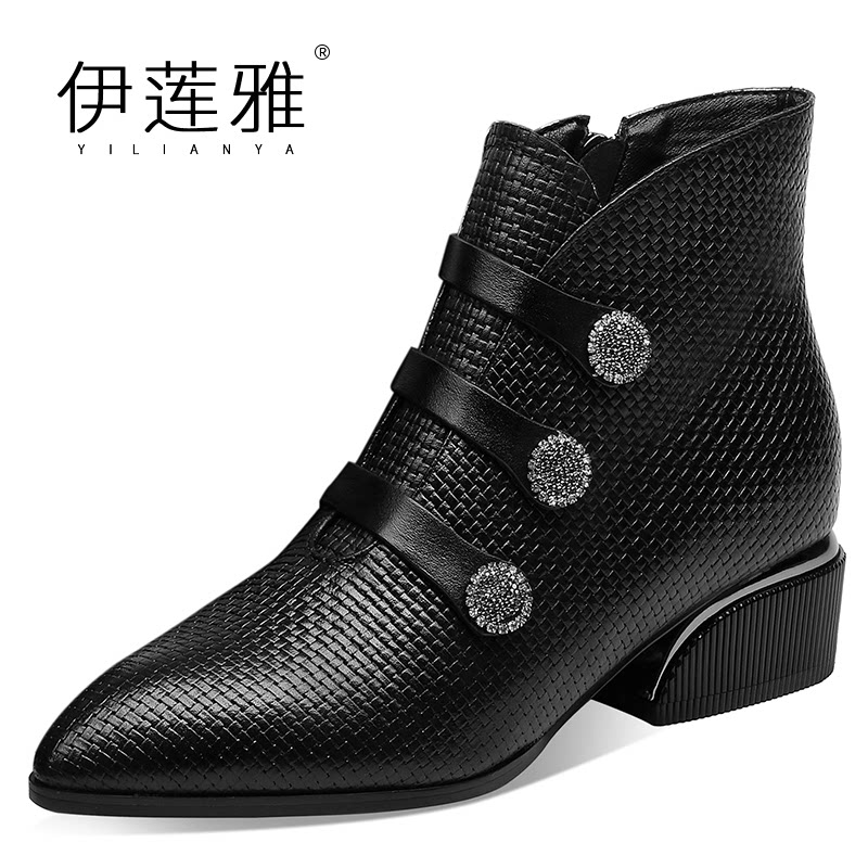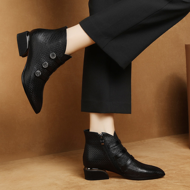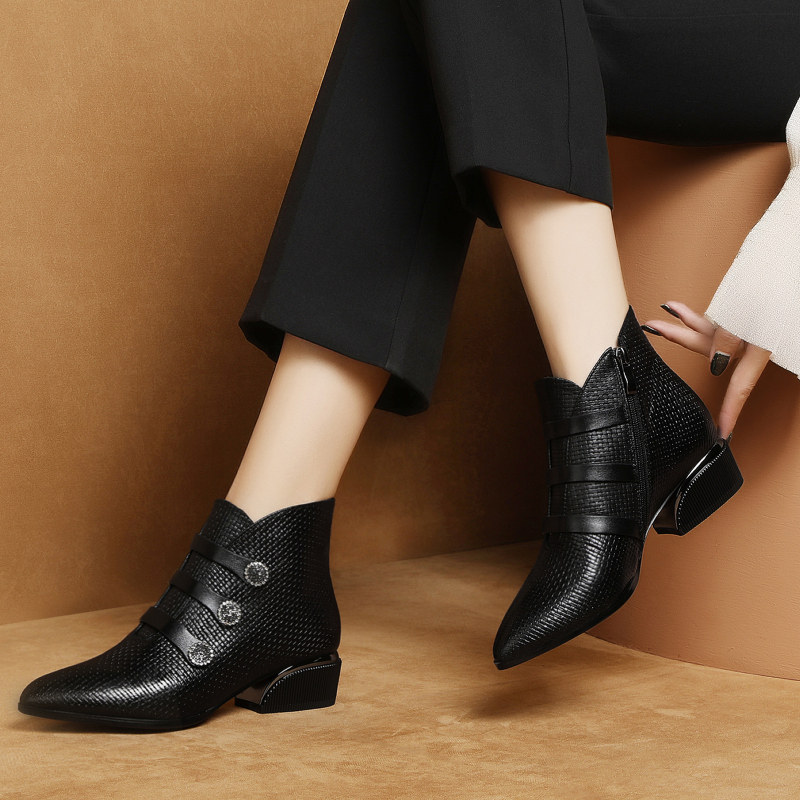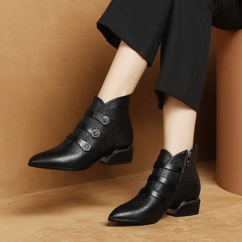 Short boots women's new autumn and winter British Martin boots women's thick heel ankle boots leather women's shoes pointed toe mid-heel single boots large size