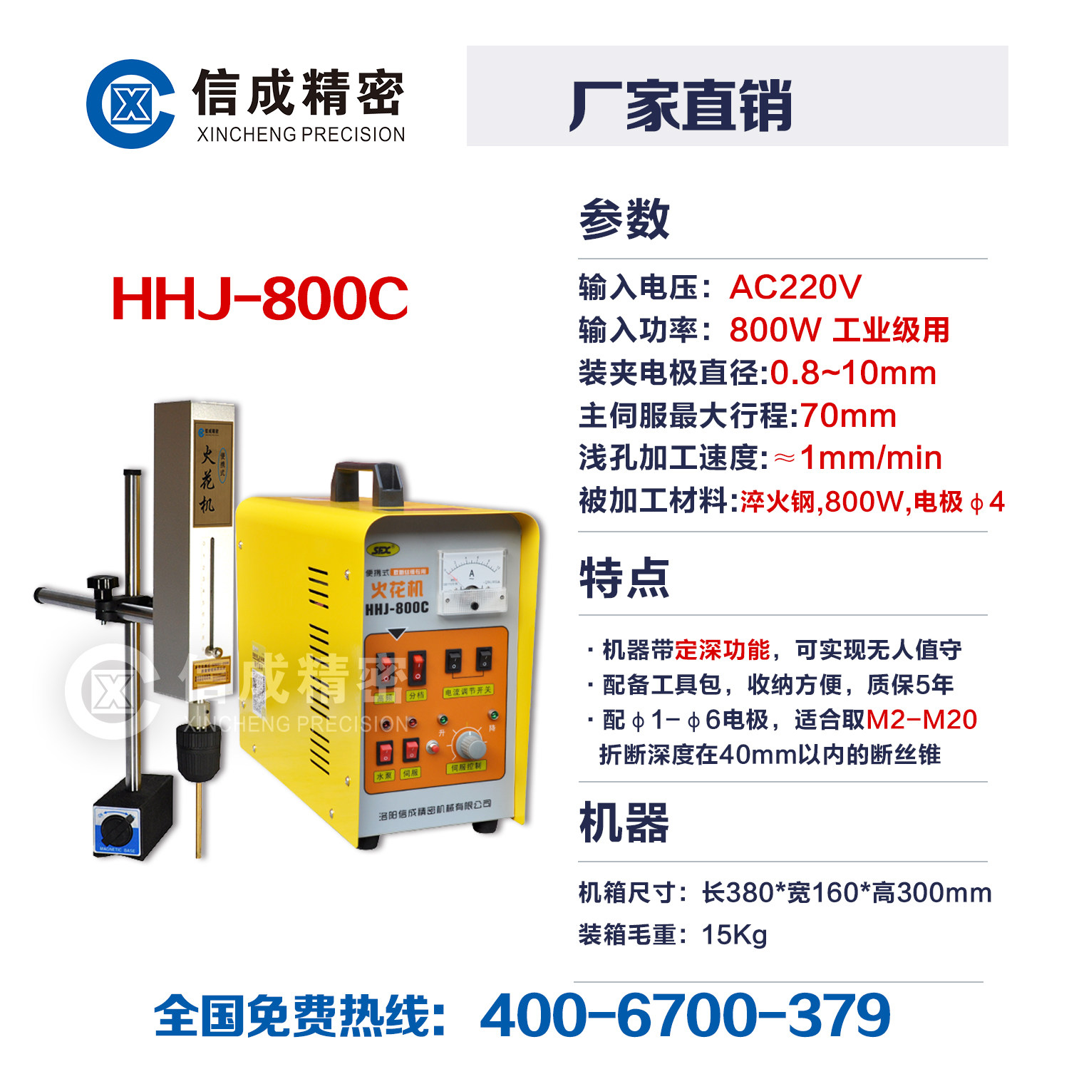 Letter forming portable electric spark machine to take off screw tapping machine electric spark fully automatic with return alarm HHJ-800C