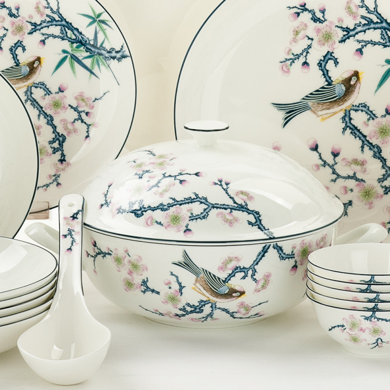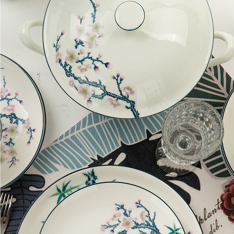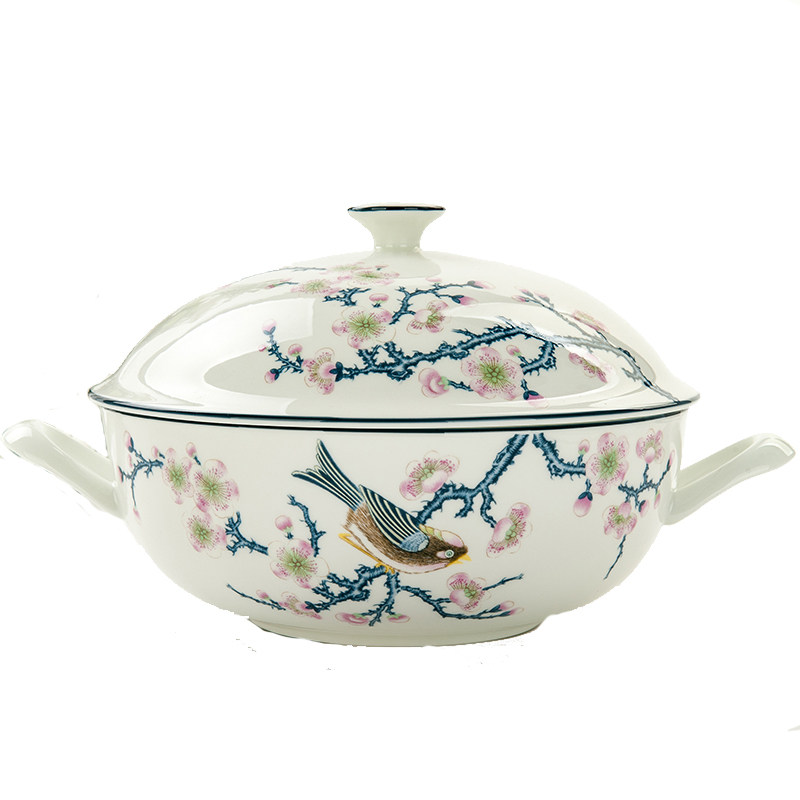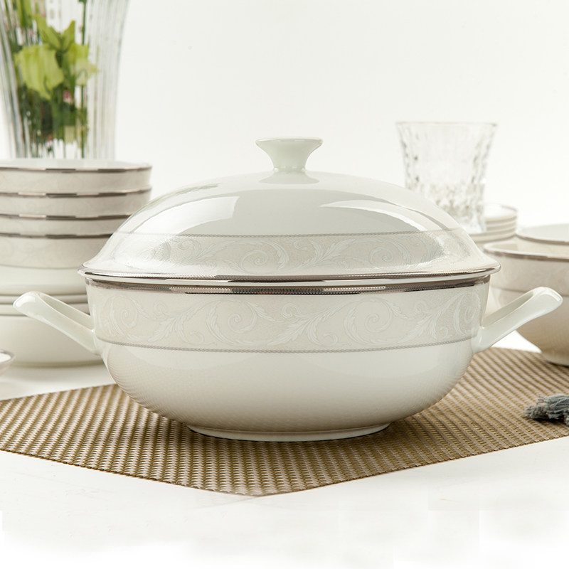 Bone China Porcelain Soup Bowl With Lid Round Ceramic Bowl Public Double Earl Pan Creative Big Number Home With Lid Large Bowl Large Stockpot
