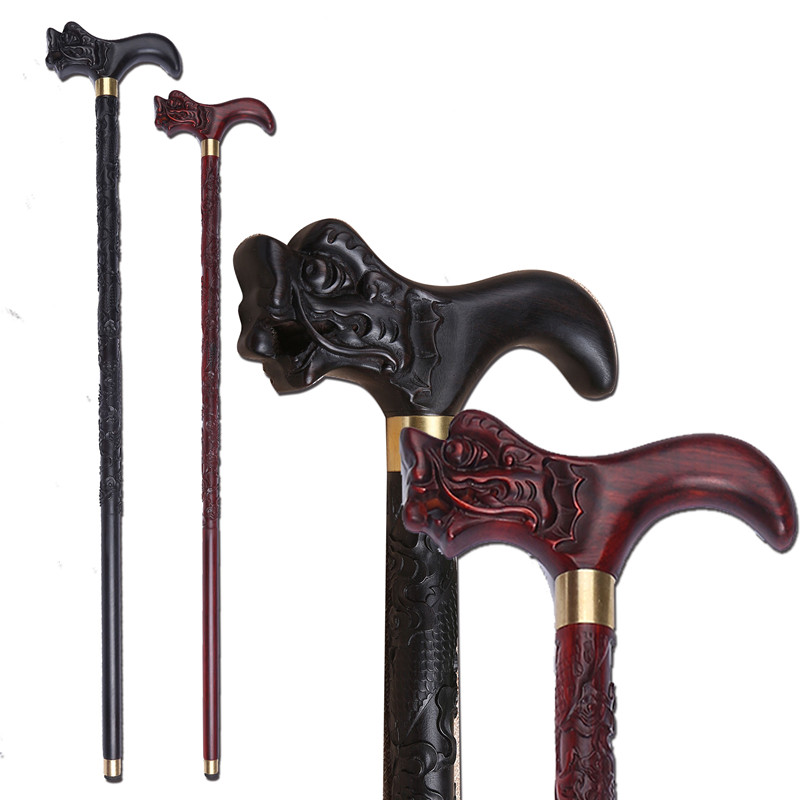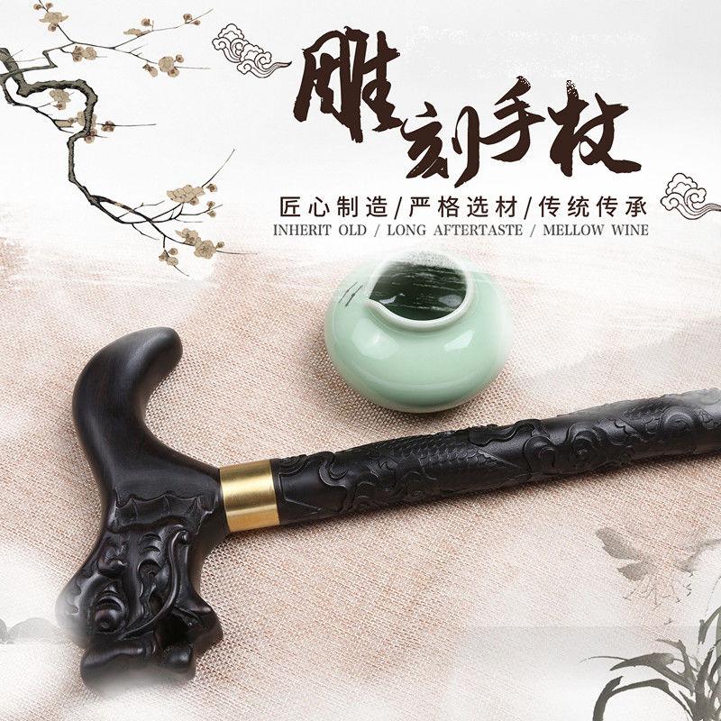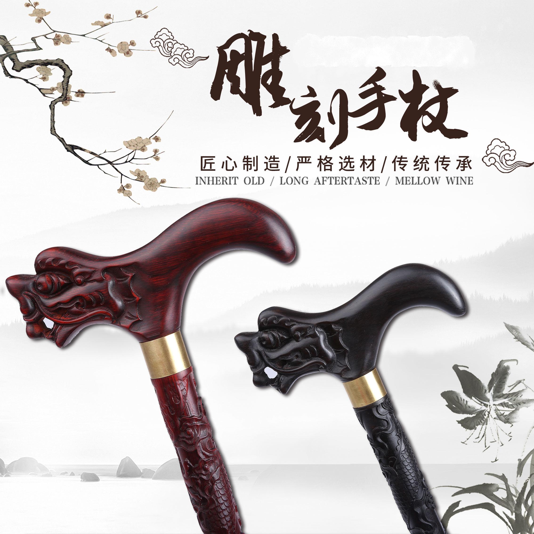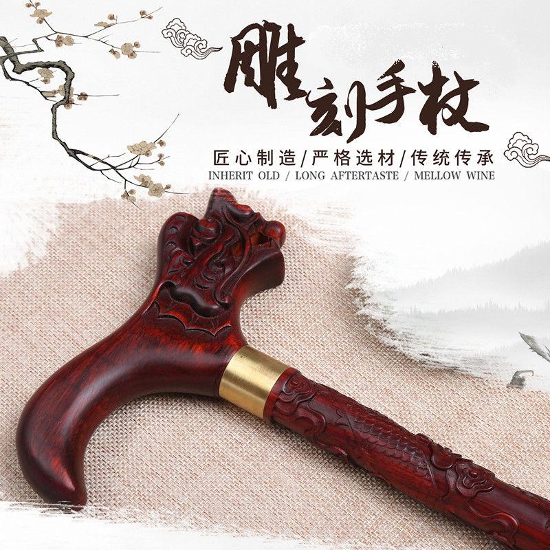 Small leaf red sandalwood purple panlong carving cane light sandalwood ebony faucet crutches solid wood mahogany old man non-slip crutches