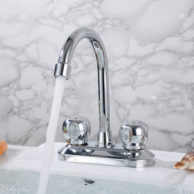 Washing double-use powder room double-hole hot and cold water faucet old-fashioned washbasin kitchen household three-hole faucet basin