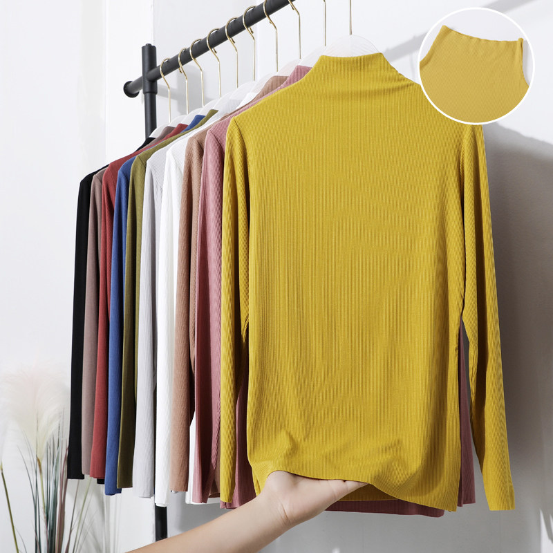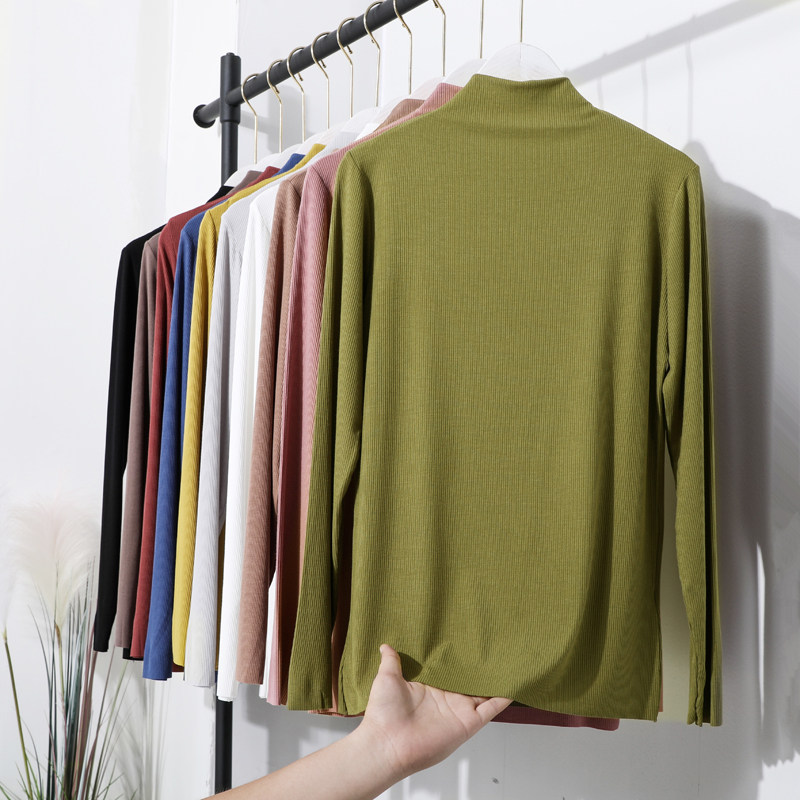2020 - The new Model Half - Collar Untracked Tunnel T - shirt thin - colored long - sleeved tops