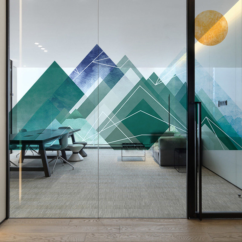 Geometric alpine glass sticker decorated personality creative office conference room push door electrostatic grinding anti-peek
