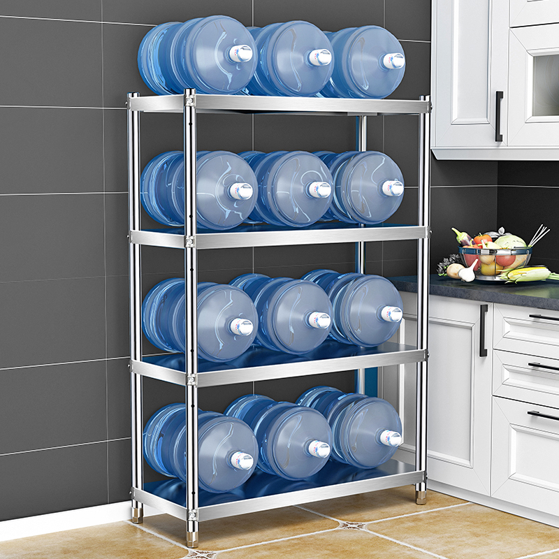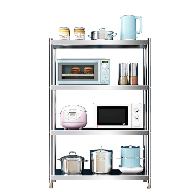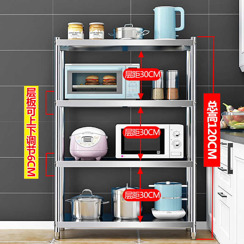 Kitchen 304 stainless steel thickened 4-layer shelf storage oven microwave oven rack Household seasoning tank rack Floor-to-ceiling four-layer